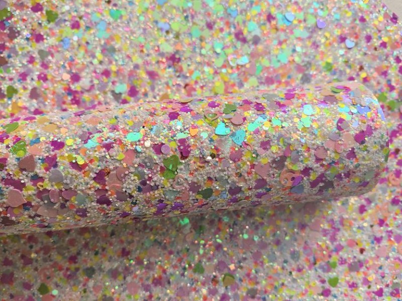 This Iridescent Love Hearts Chunky Glitter Leather For Valentine's Day can meet your crafting need,keychains,earrings,wallets,bags,shoes and other DIY products for you, your kids or loved ones.