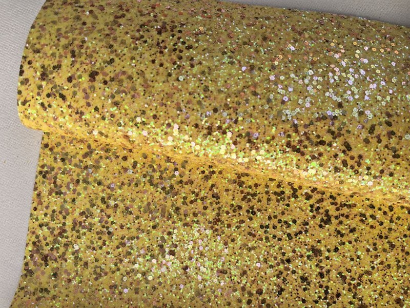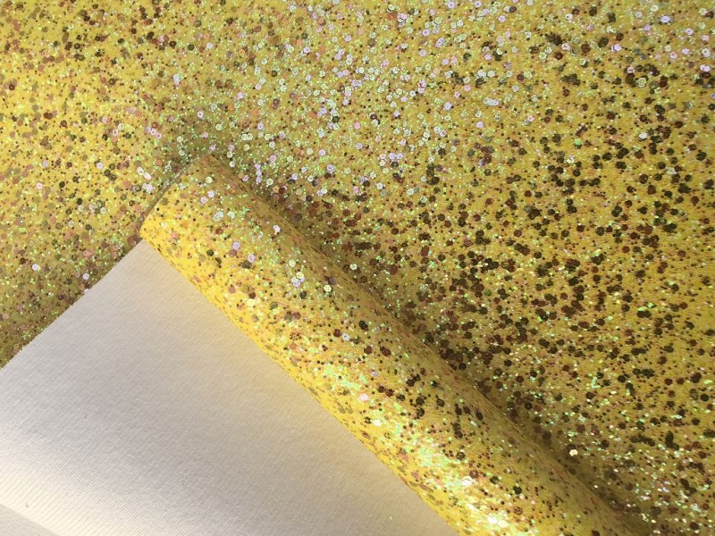 This Mini Roll Yellow Chunky Glitter Leather With Gold Sequin can meet your crafting need,keychains,earrings,wallets,bags,shoes and other DIY products for you, your kids or loved ones.