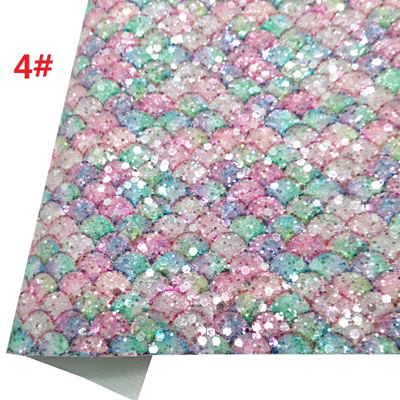 This mermaid scales chunky glitter faux leather fabric very suitable for making crafts,hair bows,earings,wallet,bags,shoes and other DIY products for you, your kids or loved ones.