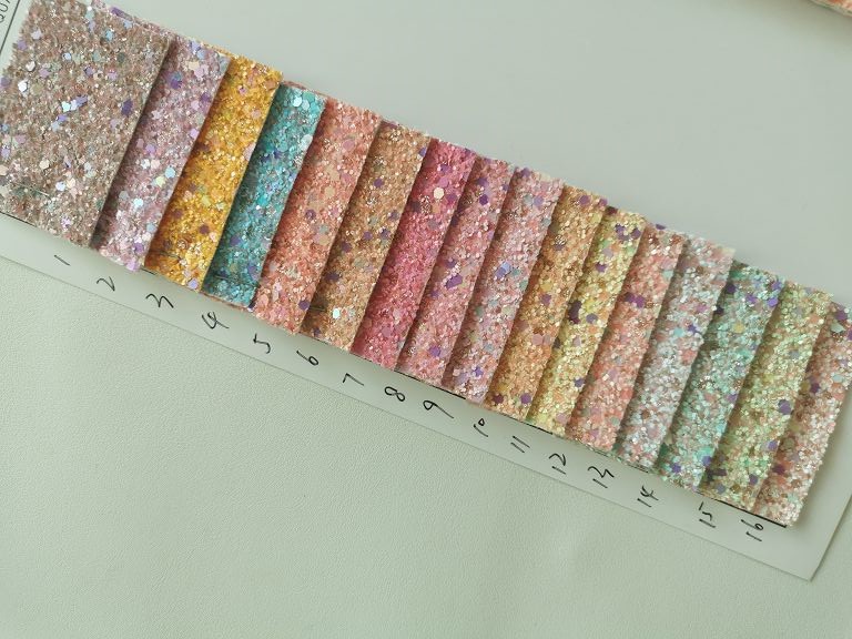 This Ultra Chunky Glitter Leather With Felt Backing Sheets can meet your crafting need,keychains,earrings,wallets,bags,shoes and other DIY products for you, your kids or loved ones.